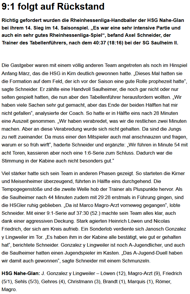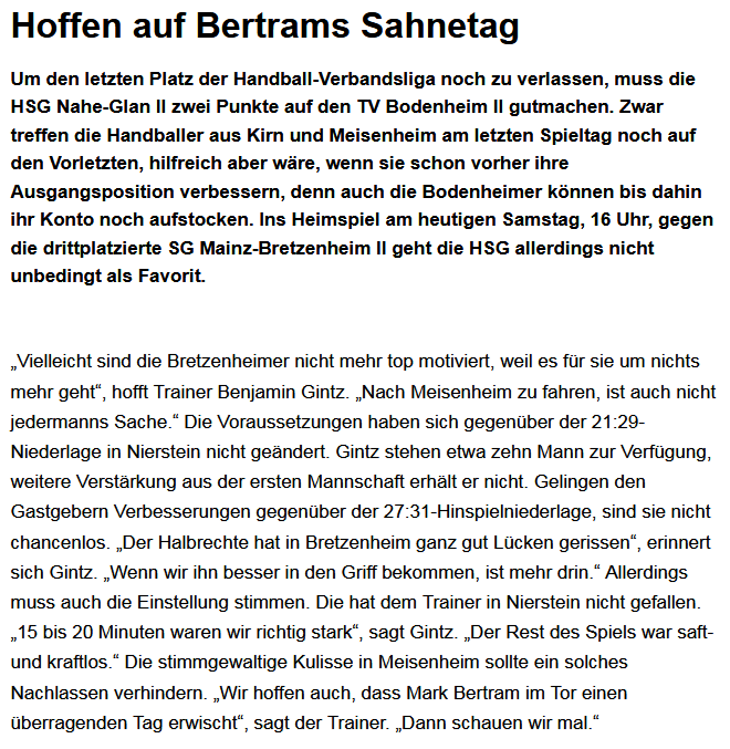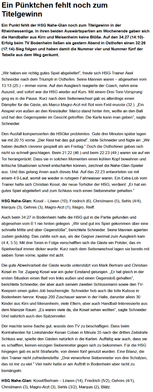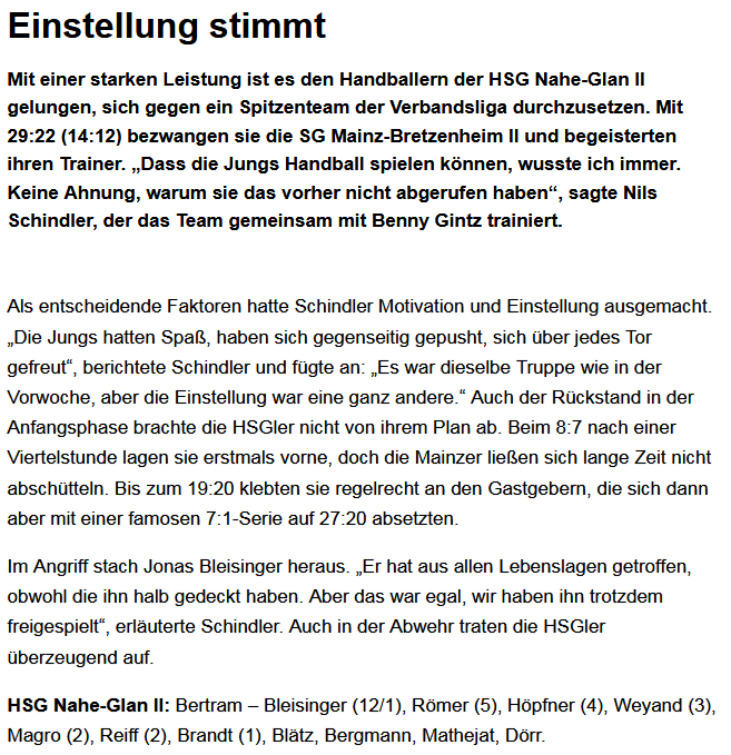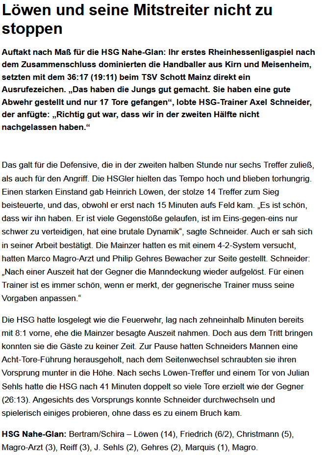 Wir weisen Sie darauf hin, dass Sie diese Facebook-Seite und ihre Funktionen freiwillig, und in eigener Verantwortung nutzen. Dies gilt insbesondere für die Nutzung der interaktiven Funktionen (z.B. Kommentieren, Teilen, Bewerten). Alternativ können Sie die über diese Seite angebotenen Informationen auch auf unserem Internet-Angebot (App) unter http://www.app.handball-kirn.de abrufen.